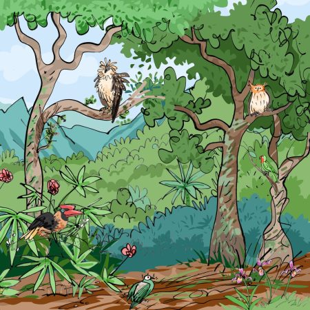 Høyt oppe i skyene deler ullapene fortellinger om hvordan de bruker halen til å forflytte seg. Tangaraene tegner regnbuer på himmelen og kaster skygger over elven, som sakte renner mot…